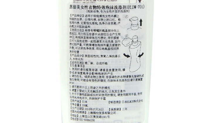 名稱:女性衣物特效泡沫洗滌劑