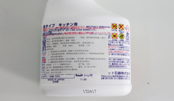 名稱:廚房噴霧式漂白劑(泡沫型)